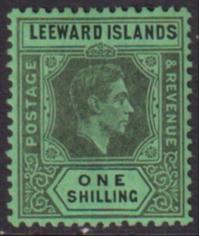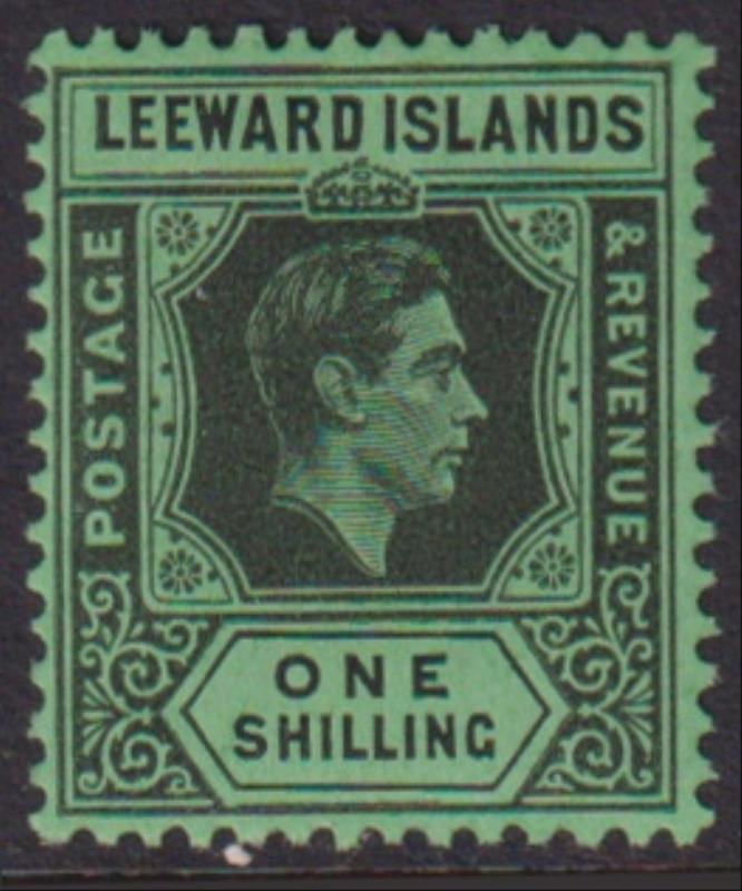 2971 * imageLeeward Isl 1938 1/- GVI black-emerald. SG 110. Cat £18. MUH. (Image)