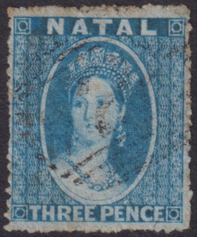 3005 U imageNatal 1861 3d QV blue, p16, no wmk. SG 11. Cat £80. FU. (Image)