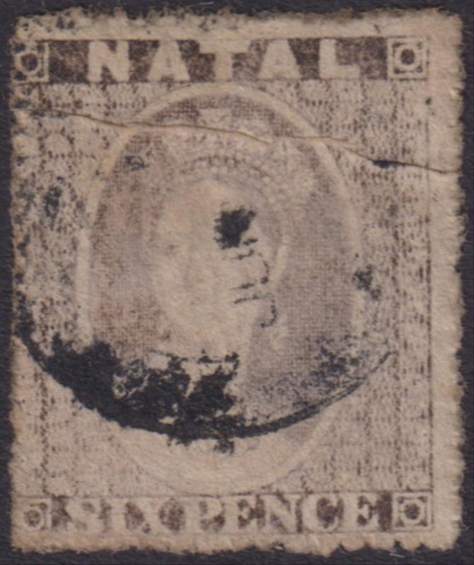 3006 U imageNatal 1862 6d QV grey, p16, horiz crease. SG 13. Cat £85. GU. (Image)