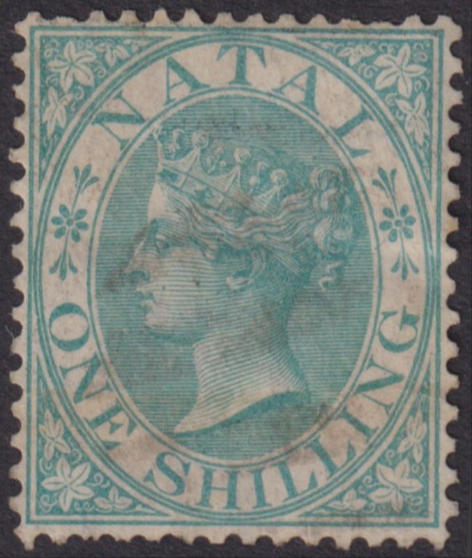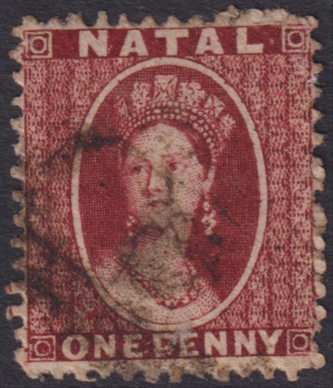 3007 U imageNatal 1863 1d QV carmine-red, p13, no wmk. SG 19. Cat £40. GU. (Image)