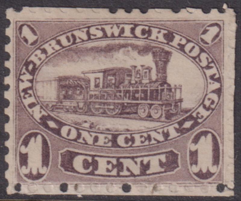 3014 M imageNew Brunswick 1860 1c Locomotive brown-purple. SG 7. Cat £85. MNG. (Image)