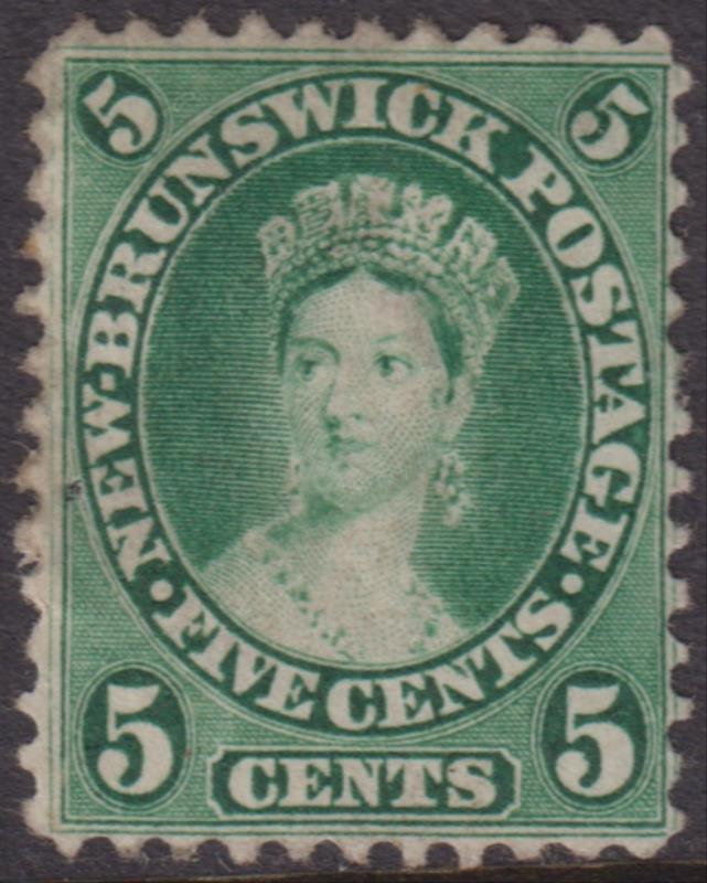 3018 M imageNew Brunswick 1860 5c QV green, adhesion. SG 15. Cat £29. Mint. (Image)