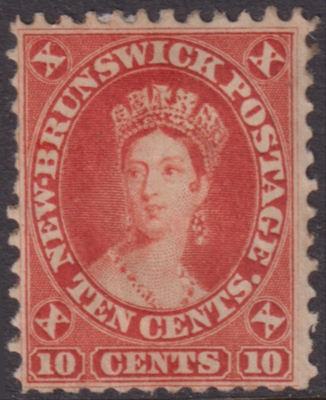 3019 M imageNew Brunswick 1860 10c QV red, adhesion. SG 17. Cat £65. Mint. (Image)