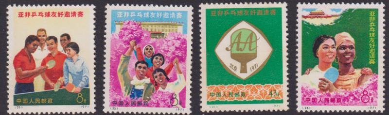 3171 U imageChina 1973 Invitation Table Tennis Championship set, some slight gum discolouration. SG 2512-5. Cat £38. MUH. (Image)