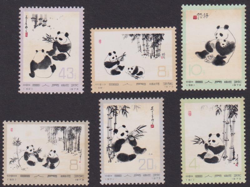 3169 * imageChina 1973 Giant Pandas set, some with gum discolouration. SG 2498-503. Cat £120. MUH. (Image)