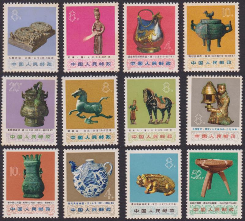 3170 * imageChina 1973 Archaeological Treasures set, odd one slight gum discolouration. SG 2537-48. Cat £33. MUH. (Image)