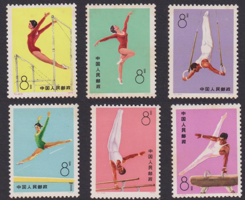 3172 * imageChina 1974 Gymnastics set, odd one slight perf tone. SG 2549-54. Cat £55. MUH. (Image)