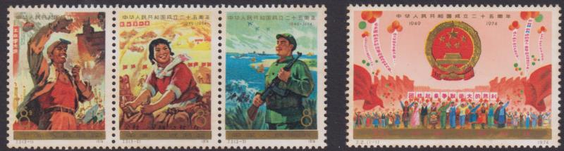 3173 * imageChina 1974 25th Anniv PRC set, slight gum discolouration. SG 2584-7. Cat £33. MUH. (Image)