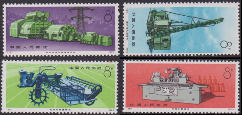 3174 * imageChina 1974 Industrial Production set (1973 date) (Mechanical rice sprouts transplanter 1 perf tone spot). SG 2593-6. Cat £275. MUH. (Image)