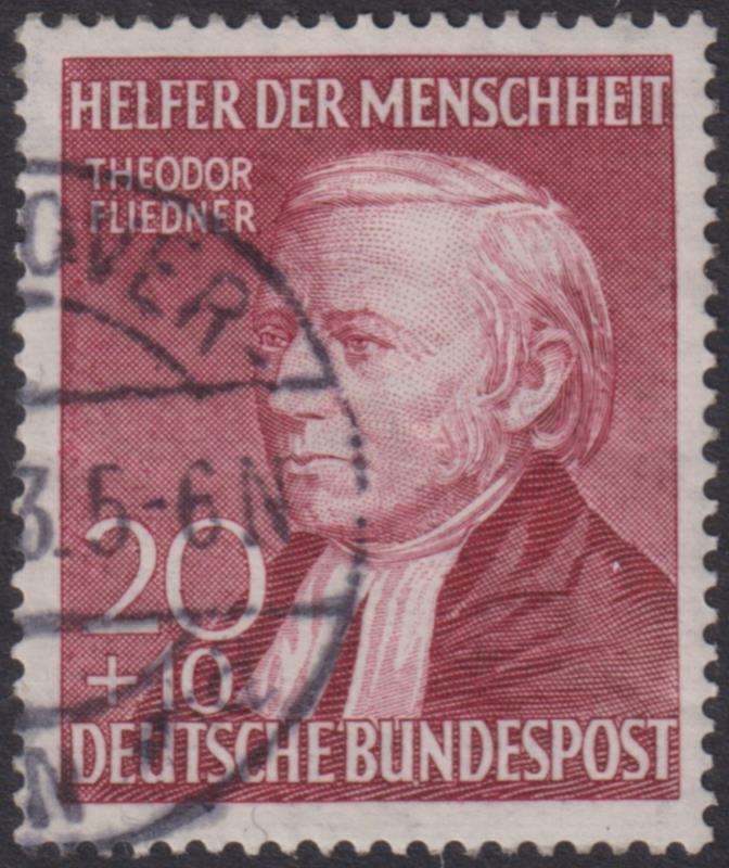 3271 U imageGermany-West 1952 10pf + 10pf Fliedner. SG 1084. Cat £23. FU. (Image)