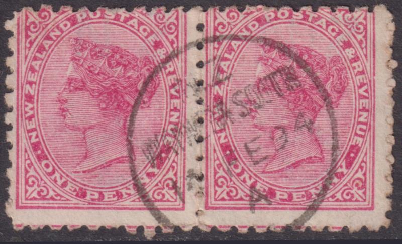 Waiwera South (DN 1867-1988) slightly doubled 14 Feb 1894 "A" class cancel on 1d SSF pair (advts Lattey Livermore & No Dairy in