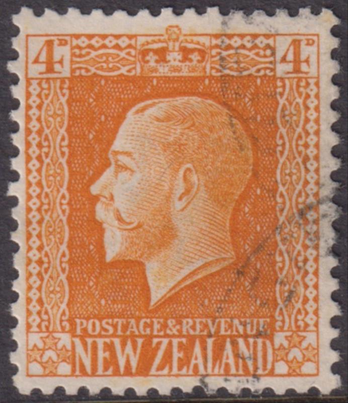 1915 4½d GV horiz strip of 4, p14 x 14¼, MANAIA 21 July 1921 "J" class cancel. CP K6b. Cat $240. VFU.