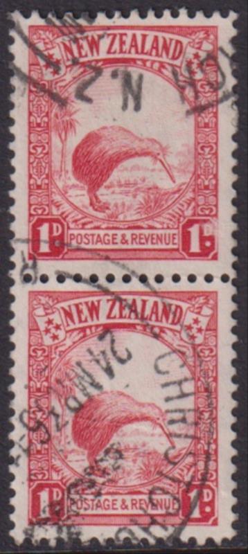 1053 U image1936 1d Kiwi dated pair (die I), p13½ x 14, single wmk. CP L2b. Cat $180. FU. (Image)