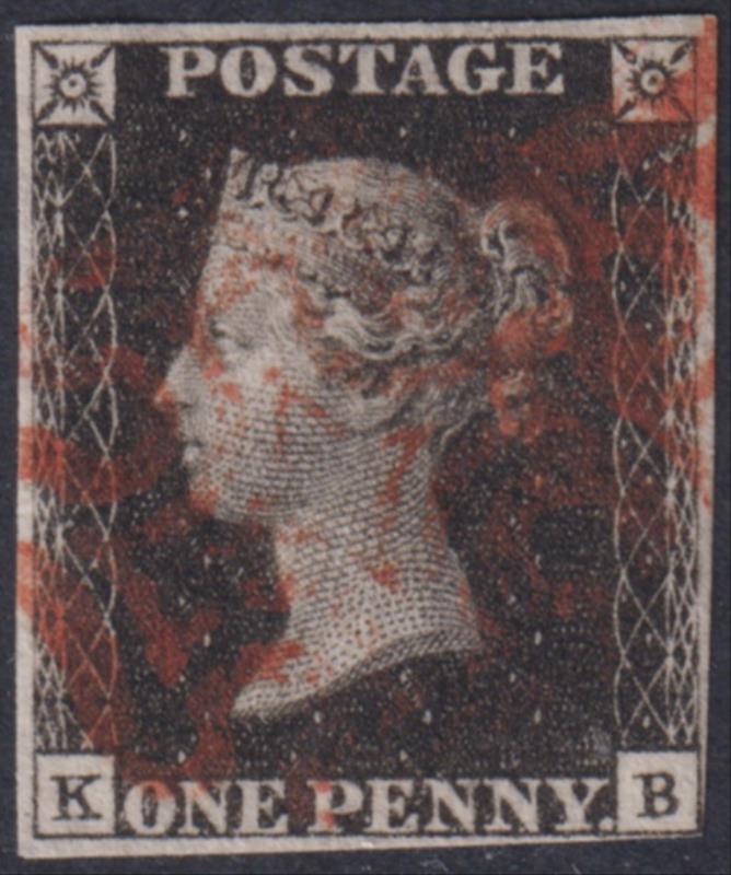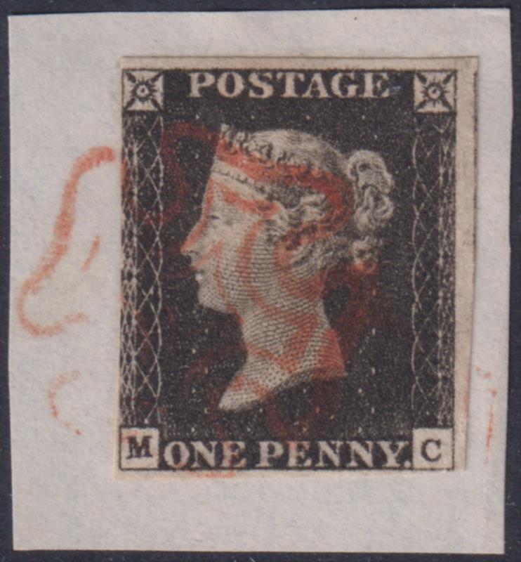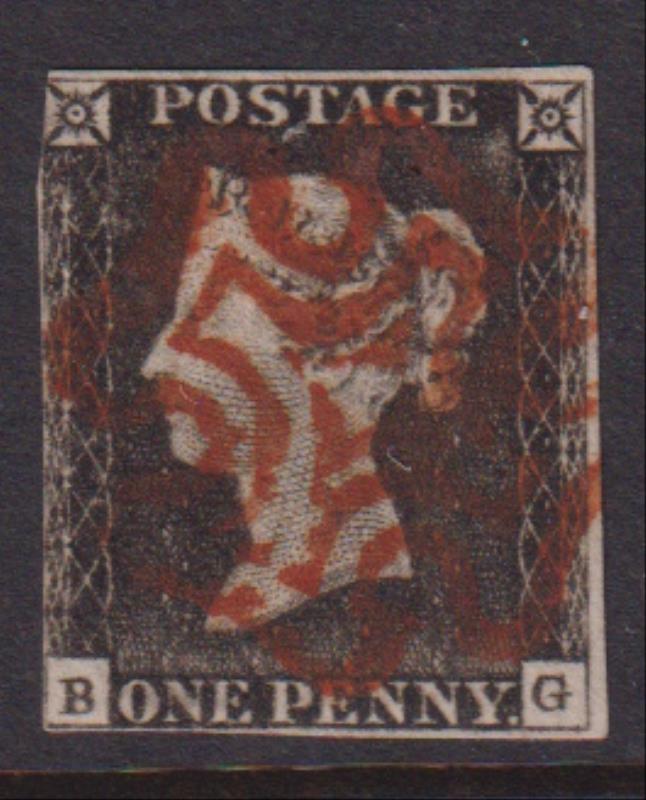 2556 U image1840 1d Black (BG), plate 3, 3 margins, red MC cancel. SG 2. Cat £450. (Image)