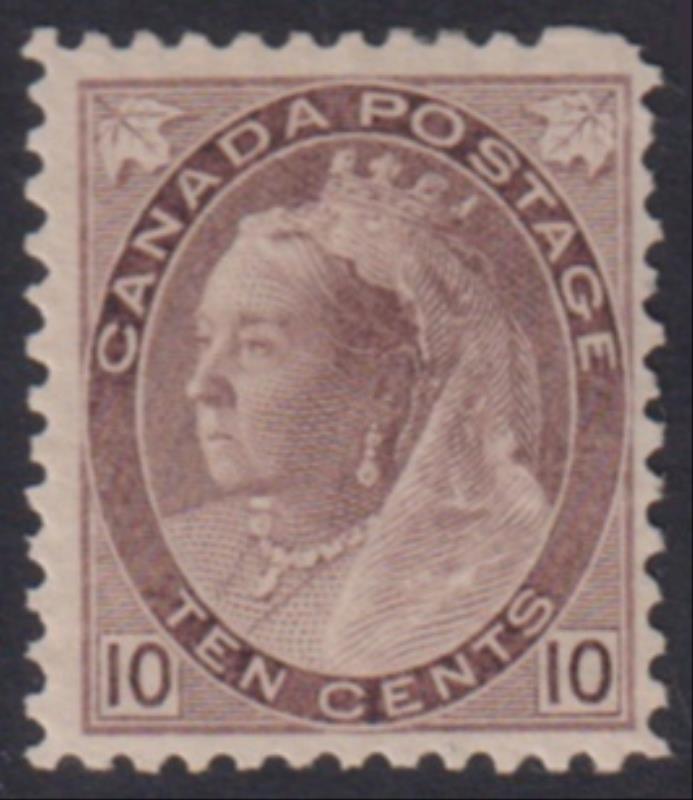 Canada 1898 10c QV (2 Maple Leaves) pale brownish purple. SG 163. Cat £170. LH mint. (Image)