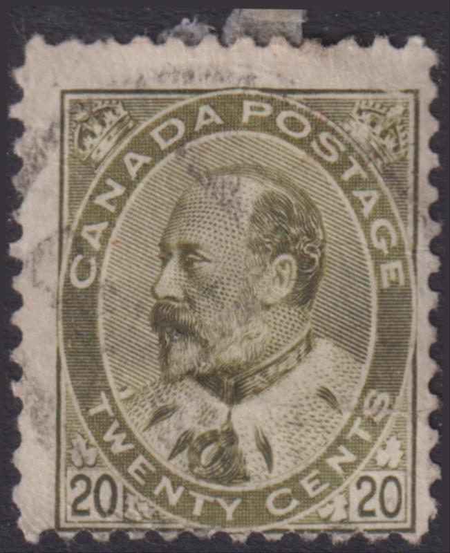 Canada 1903 20c EVII pale olive-green. SG 185. Cat £45. FU. (Image)