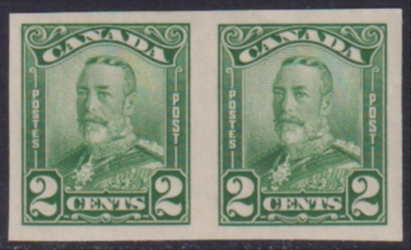 Canada 1928 2c GV green horiz imperf pair. SG 276 var. Cat £120+. Mint. (Image)