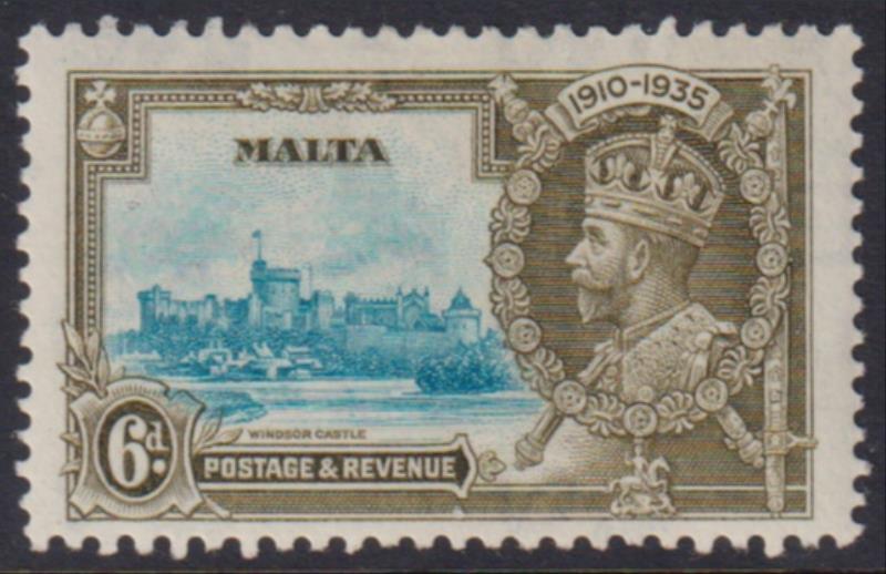 3080 M imageMalta 1935 6d Jubilee, variety "Extra Flagstaff". SG 212a. Cat £180. Mint. (Image)