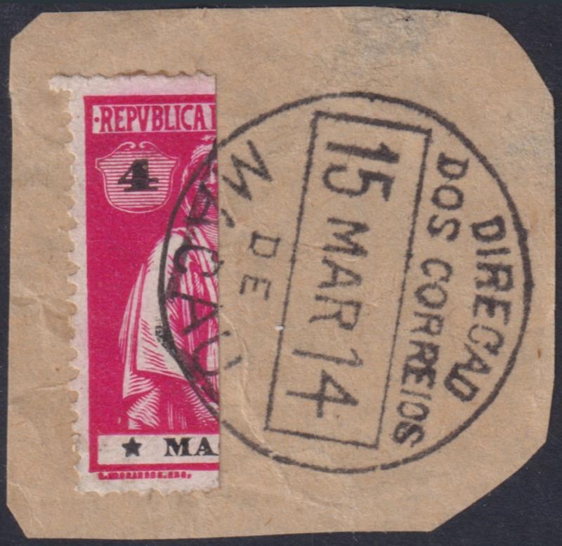 3393 U imageMacao 1914 4a Ceres, vert bisect (left half), on piece, 15 MAR 14 cds. Yang 213a. (Image)
