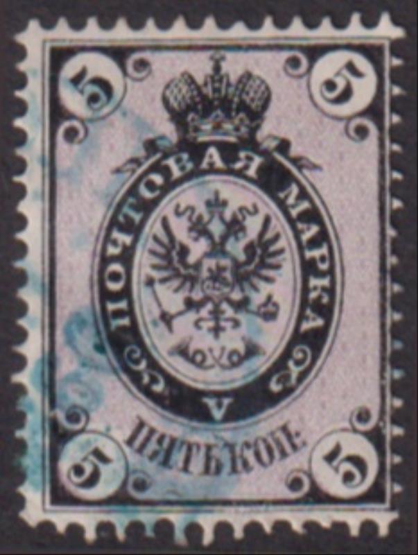Russia 1866 5K black & lavender, o14½ x 15, horiz laid paper. SG 20a. Cat £31. FU. (Image)