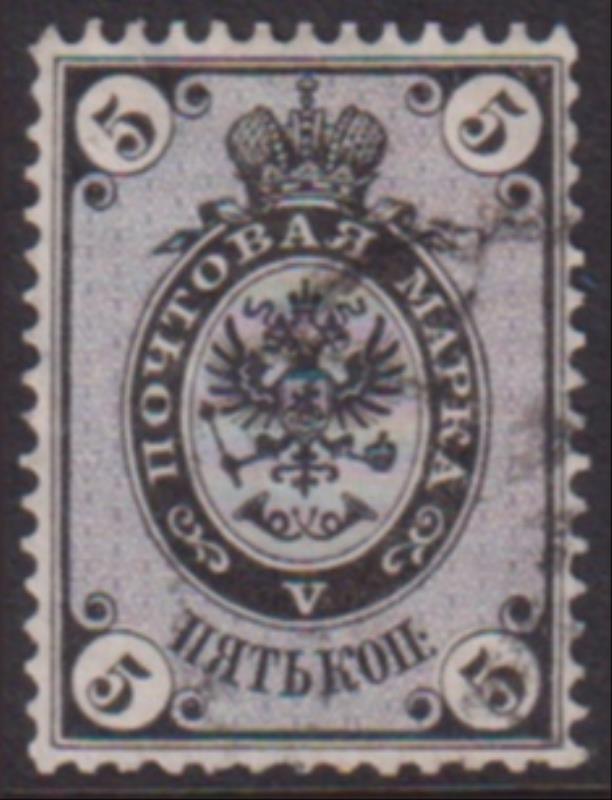 Russia 1865 5K black & lilac, p14½ x 15, wove paper, no wmk. SG 14. Cat £75. FU. (Image)