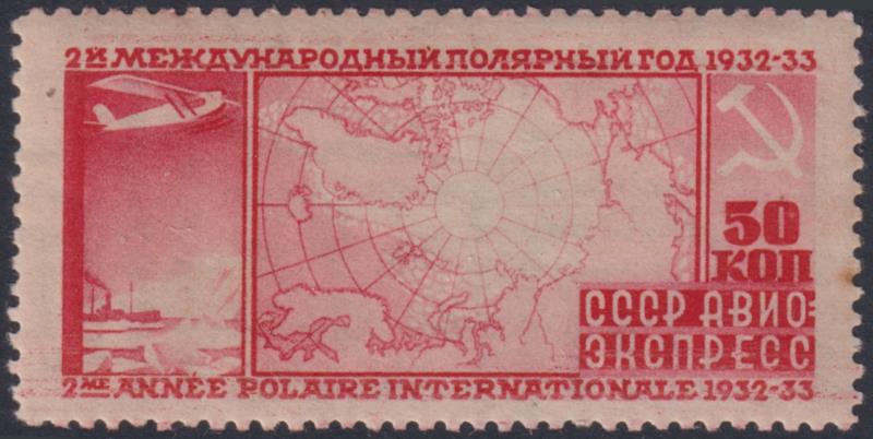 Russia 1932 50K 2nd International Polar Year carmine, p12¼ (Special Arctic Flight). Small mark on perf. SG E591. Cat £55.
