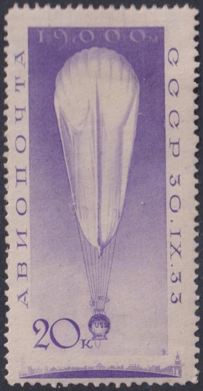 Russia 1933 20K Stratosphere Balloon Record violet. SG 636. Cat £55. HH mint. (Image)