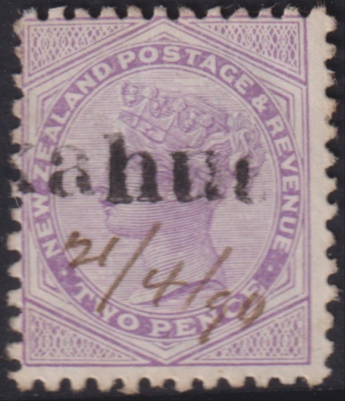 Takahue (WR 1887-1930) "Takahue" rubber h/s, partial strike ("-ahue" & part of "K"), with m/s date 21/4/90 on 2d SSF, p12 x