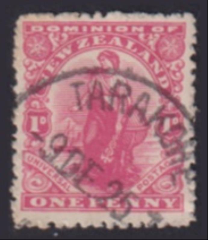 Tariki Road (NU 1890-1902) fine near complete "A" class cancel (3 March ??) on 1d Universal. Wooders 6. (Image)