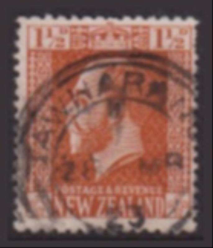Tawharanui (AK 1904-41) clear large part strike (TAWHARAN- & part U) 28 MR 23 on 1½d GV orange-brown. Scarce. (Image)