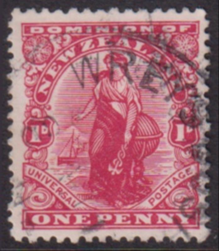 Whangarei (WR) fine large part strike of "83" in 7 bars oval obliterator on 2d FSF, p12 x 11½. (Image)
