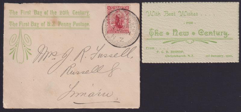 Timaru (CP G1ay, cat $775). Also included is a scarce, pristine F.C.B. Bishop (With Best Wishes … / FOR / The New Century) busin