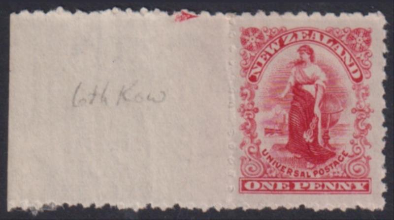 1901 1d Universal, p11, Basted Mills. Wide sheet selvedge at left. CP G3a. Cat $450. Mint. (Image)
