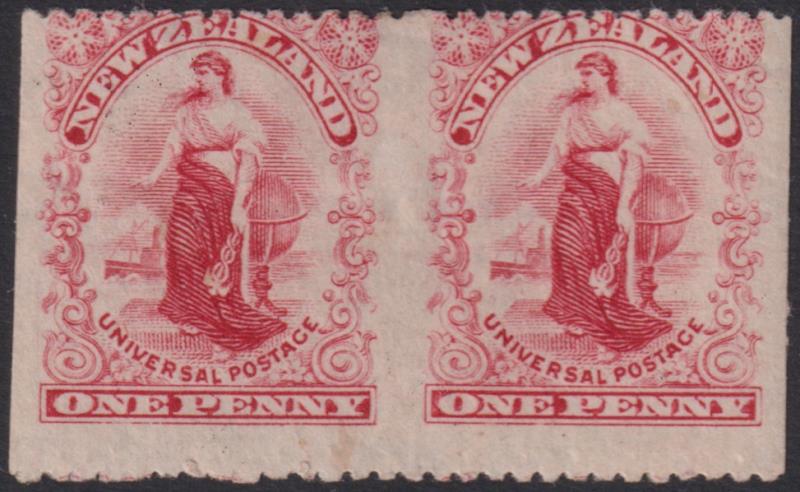 1901 1d Universal horiz pair, imperf vertically, p14 horiz, Basted Mills. CP G3bx. Cat $975. Mint. (Image)