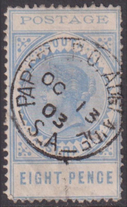 1985 U imageSouth Australia 1904 8d QV ultramarine, thin "POSTAGE" superb. SG 272. Cat £22. (Image)