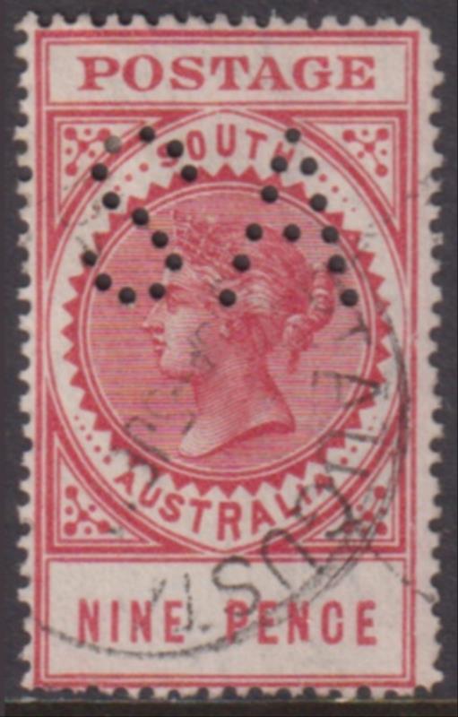 1989 U imageSouth Australia 1909 9d QVLT lake, p12½, "SA" puncture. BW S53ba. Cat A$100. VFU. (Image)