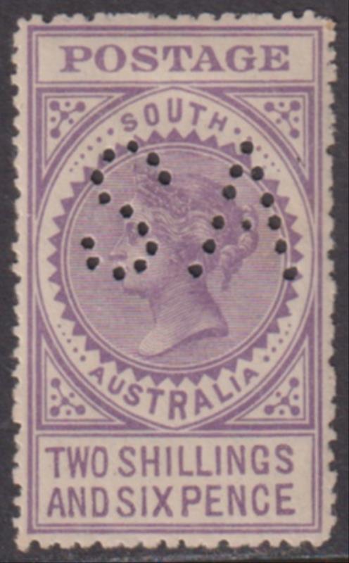 1990 M imageSouth Australia 1910 2/6d QVLT pale violet, p12½, "SA" puncture, slight gum discolouration. BW S66. Cat A$130. Mint. (Image)