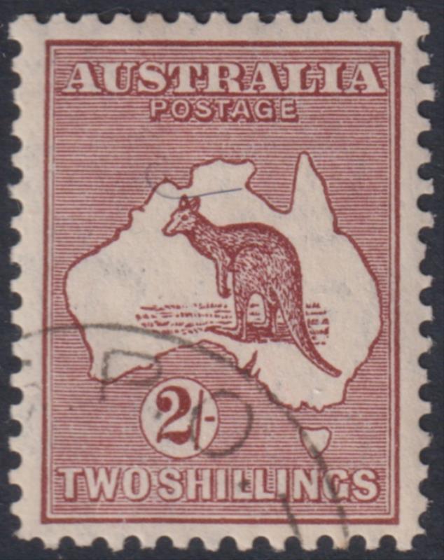 1935 2/- Roo maroon, C of A wmk. BW 40w. Cat A$25. CTO (full gum) FU. (Image)