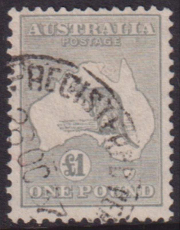 1935 £1 Roo grey, wmk mult crown & C of A. Excellent perfs. SG 137. Cat £300. FU. (Image)