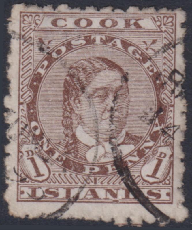 Cook Isl 1893 1d Makea brown, p12 x 11½. SG 5. Cat £65. FU. (Image)