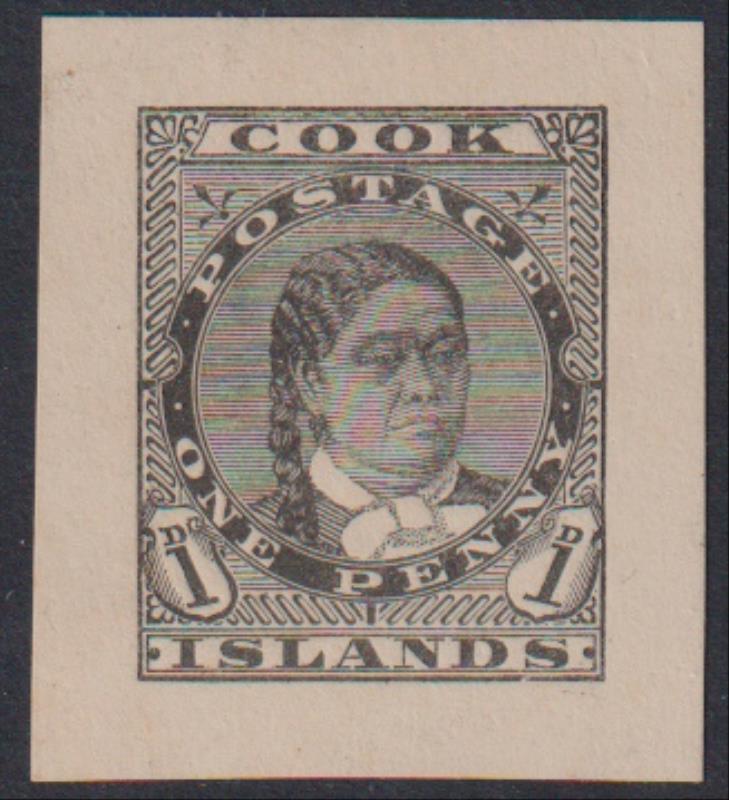 Cook Isl 1893 1d Makea die proof in black on cream paper. (Image)