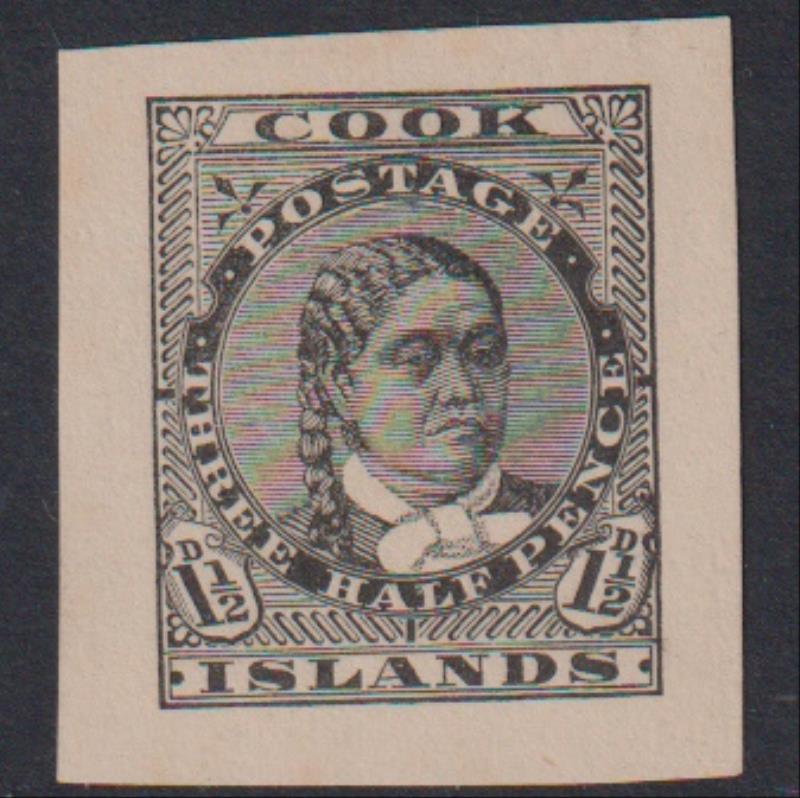 Cook Isl 1893 1½d Makea die proof in black on cream paper. (Image)