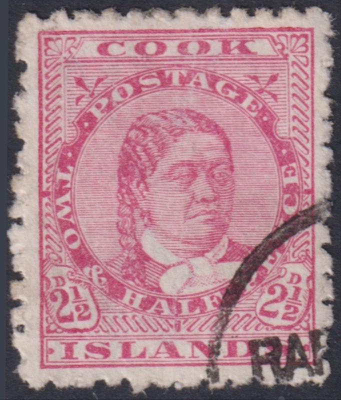 Cook Isl 1893 2½d Makea rose, p12 x 11½. SG 8. Cat £25. FU. (Image)