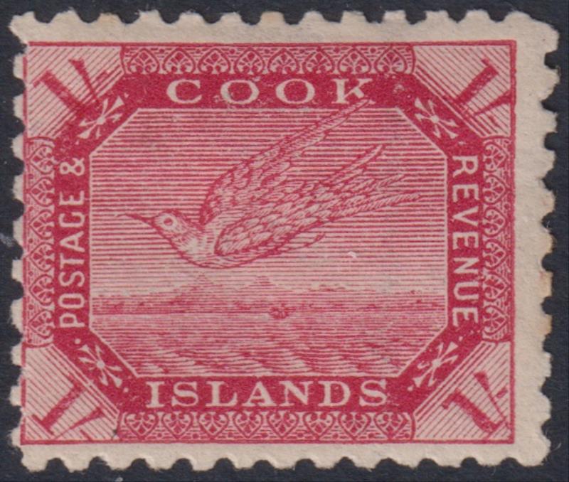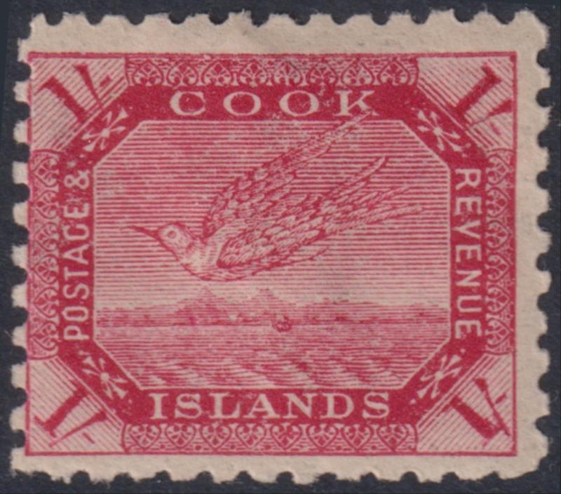 Cook Isl 1898 1/- Tern red (thin, toned paper), p11, sideways wmk, o/c. SG 20. Cat £65. Mint. (Image)