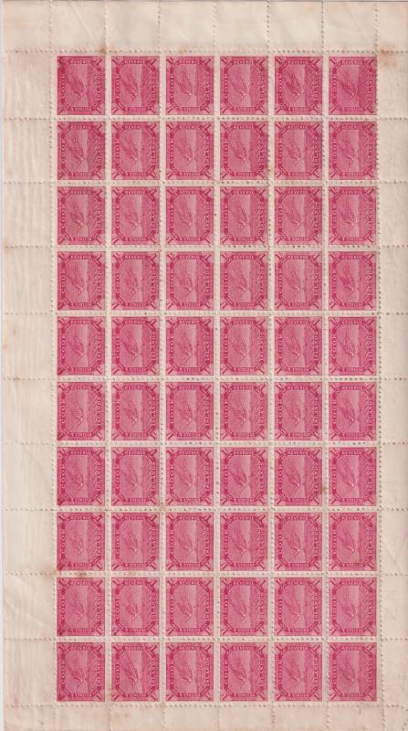 Cook Isl 1902 1/- Torea carmine complete sheet of 60, p11, wmk invtd NZ & star close together. Gum tone affects approx 75% &
