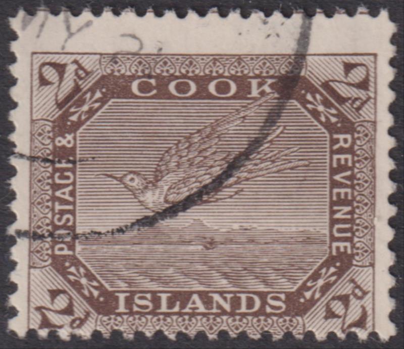 Cook Isl 1919 2d White Tern deep brown, sideways wmk, p15 x 14. SG cat £50. FU. (Image)