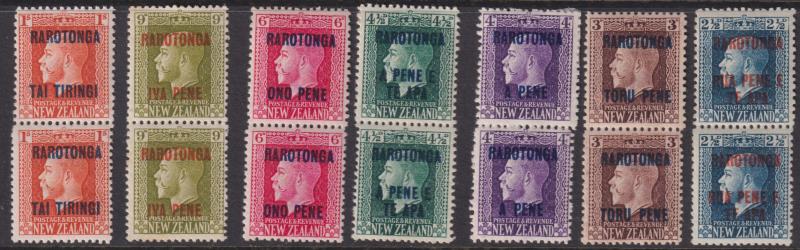 Cook Isl 1919 2½d-1/- GV 2 perf pairs set (7v). SG 48b etc. Cat £220. Mint/MUH. (Image)
