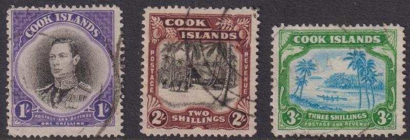 Cook Isl 1938 1/-, 2/- & 3/- Pictorials set. SG 127-9. Cat £80. FU. (Image)