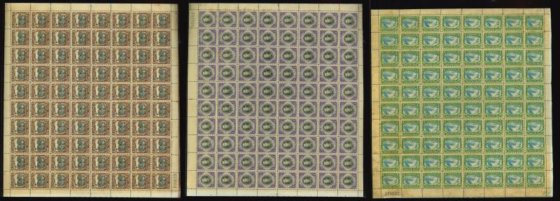Cook Isl 1938 1/-, 2/- & 3/- Pictorials as complete sheets of 80, single wmk. Very minor tone on 1/- affects several stamps,