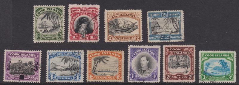 Cook Isl 1940-6 ½d to 3/- Pictorials set (10v). SG 130 etc. Cat £160+. FU. (Image)